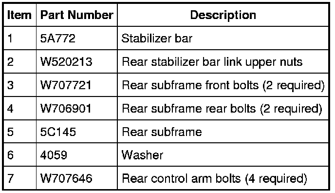 1. NOTICE: Suspension and subframe fasteners are critical parts because they affect performance of vital parts and systems and their failure can result in major service expense. A new part with the same part number must be installed if installation becomes necessary. Do not use a replacement part of lesser quality or substitute design. Torque values must be used as specified during reassembly to make sure of correct retention of these parts.
