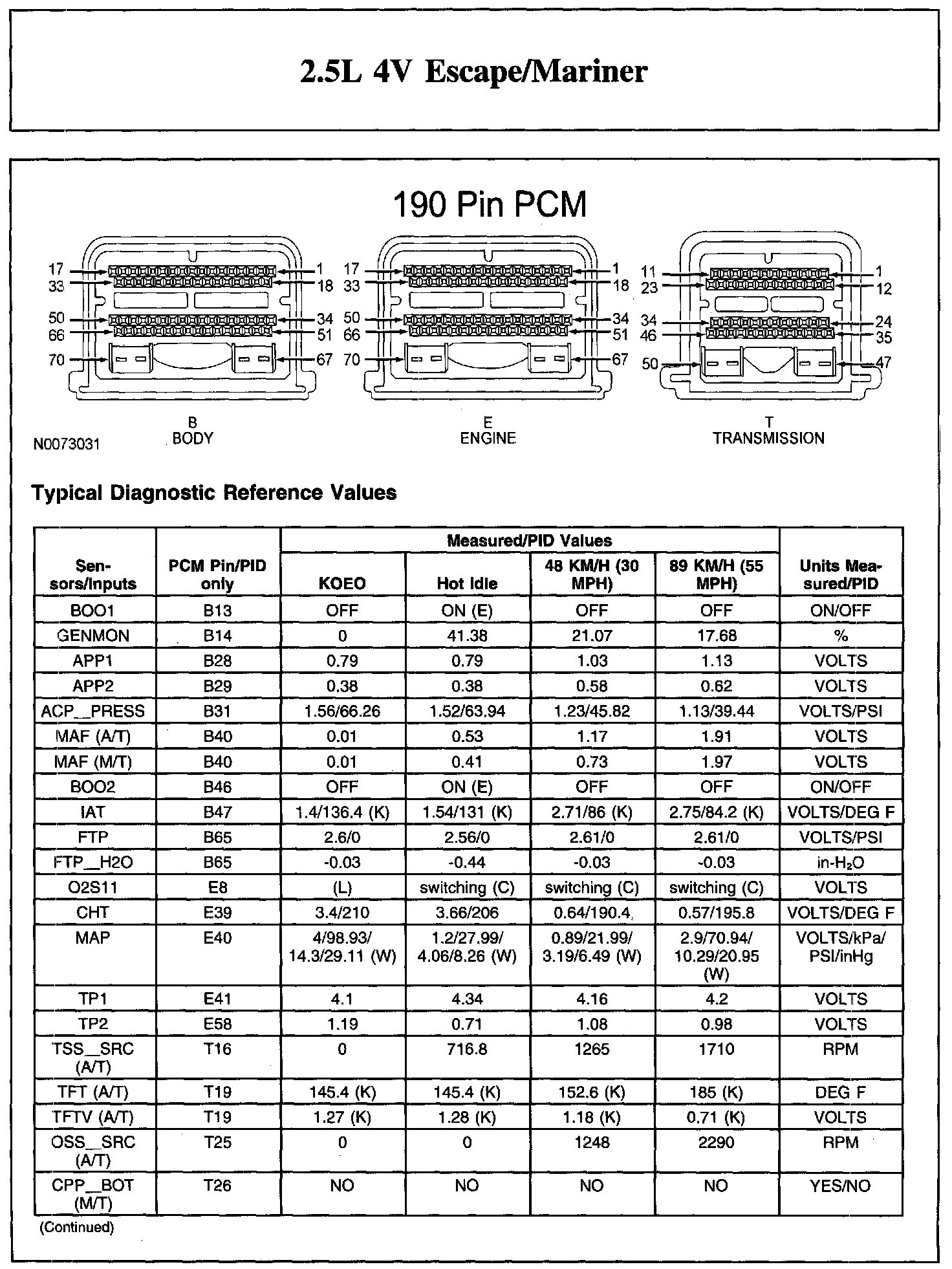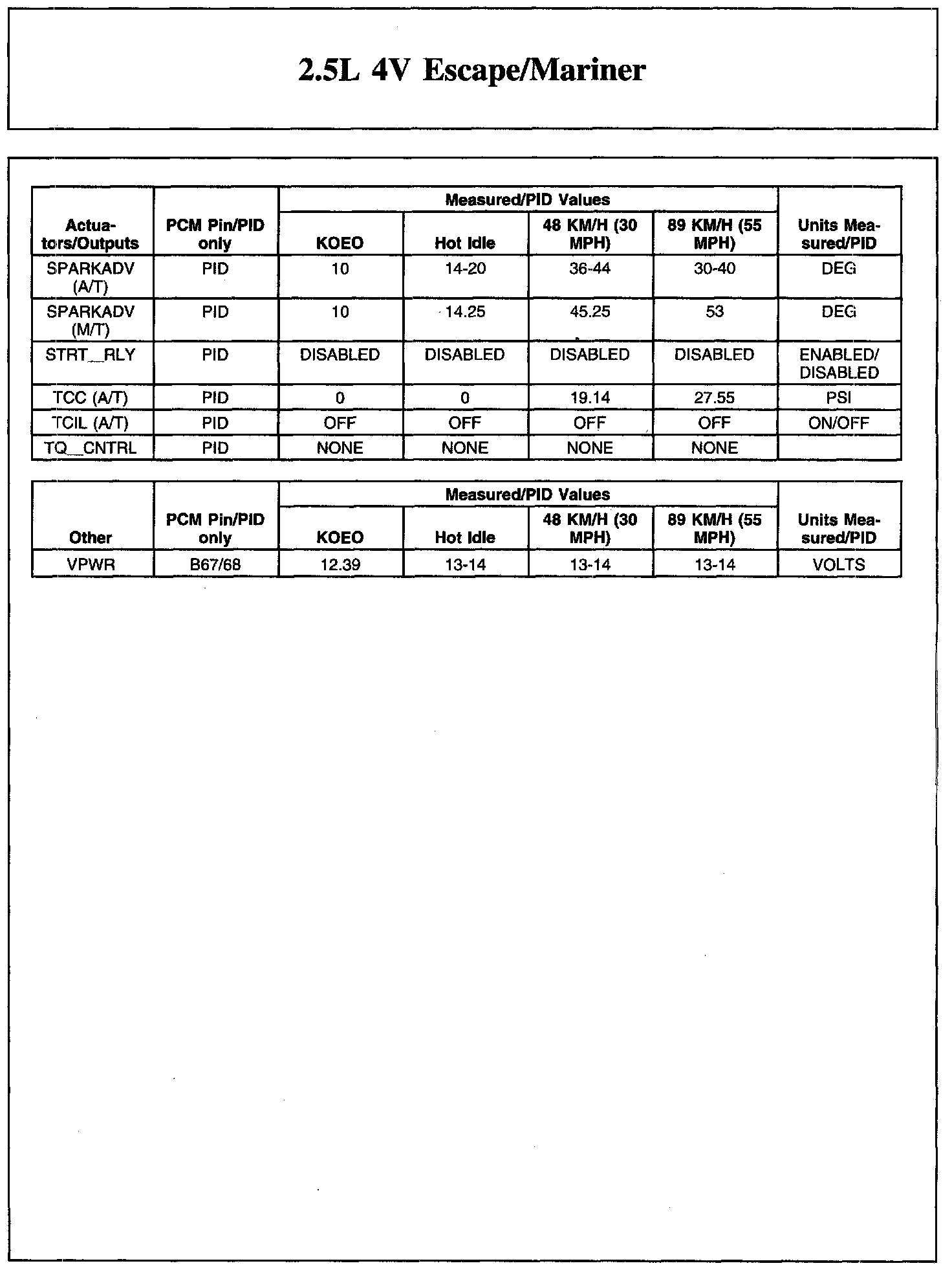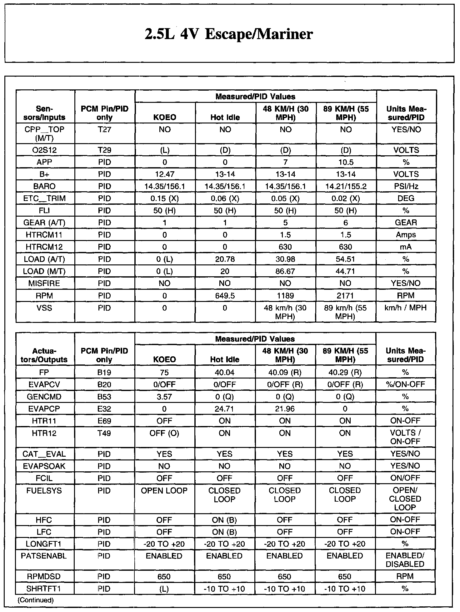 Home >> Ford >> 2010 >> Escape 4WD L4-2.5L >> Repair and Diagnosis >> Powertrain Management >> Computers and Control Systems >> Testing and Inspection >> Scan Tool Testing and Procedures >> Typical Diagnostic Reference Values
