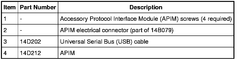 1. NOTE: It is necessary to record the current Accessory Protocol Interface Module (APIM) software and hardware level when a new APIM is being installed to make sure that the new component is the same version as the component being replaced.