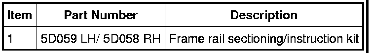 NOTICE: The following is step-by-step procedure for carrying out front frame horn replacement on Expedition/Navigator models. The Expedition/Navigator is a body on frame vehicle which is designed with energy absorbing features in the front frame horns to manage crash energy. The horn section of the frame MUST NOT be straightened if any holes or surfaces show evidence of collapse or buckling. If any evidence of damage exists BEHIND the first frame crossmember in terms of buckling or cracking, then the ENTIRE frame must be installed new.