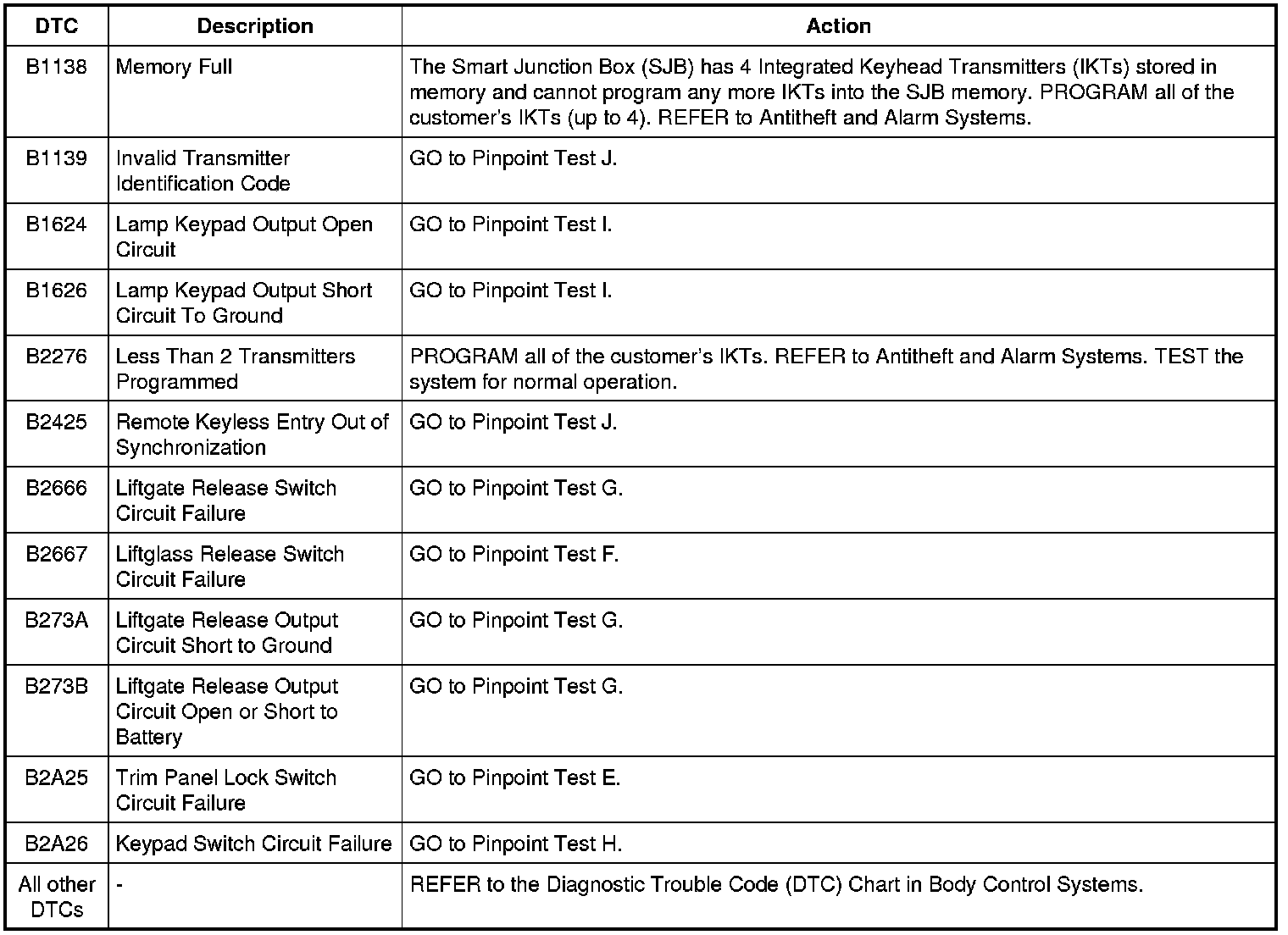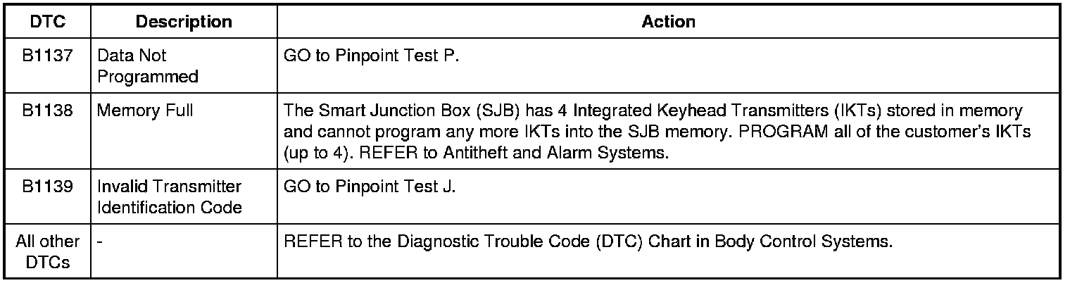Smart Junction Box (SJB) DTC Chart