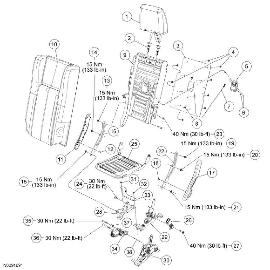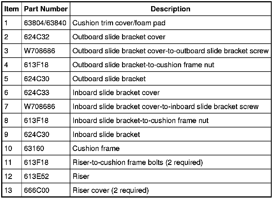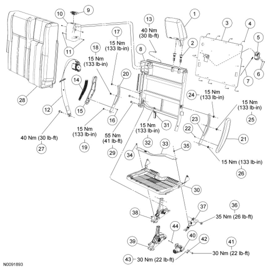 Seat - Exploded View, Third Row
