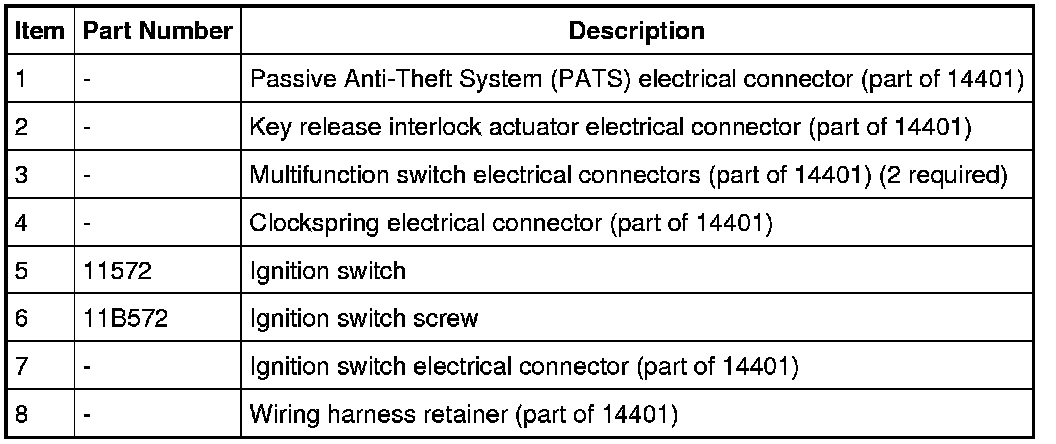 7. Disconnect the ignition switch electrical connector.