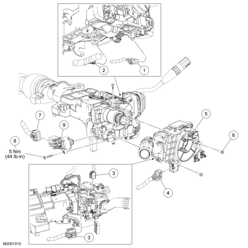 10. NOTICE: Make sure the electrical wiring harness is routed correctly and secured to the steering column or damage to the wires and/or connectors may occur.