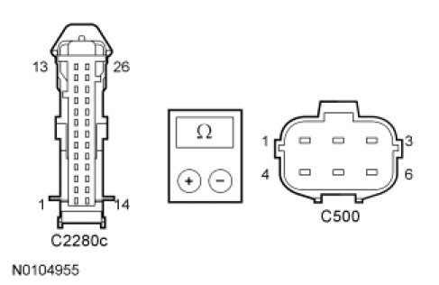 - Measure the resistance between the SJB, harness side and the keyless entry keypad, harness side as follows: