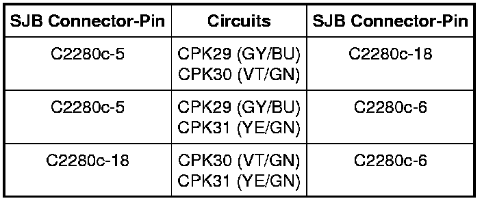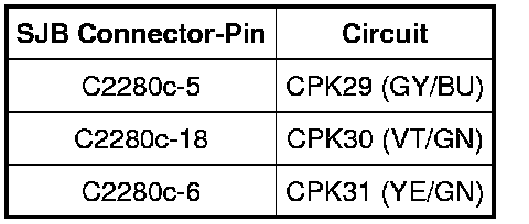 - Connect a fused jumper wire between the keyless entry keypad, harness side, while monitoring the SJB PID (KEY_PAD) as follows: