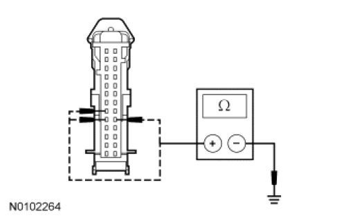- Measure the resistance between the SJB, harness side and ground as follows: