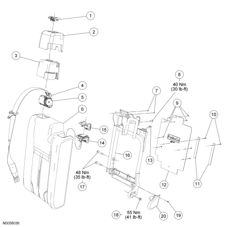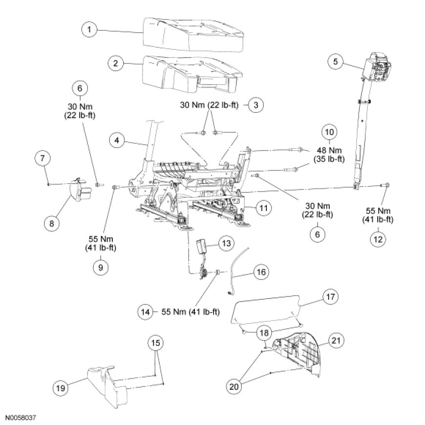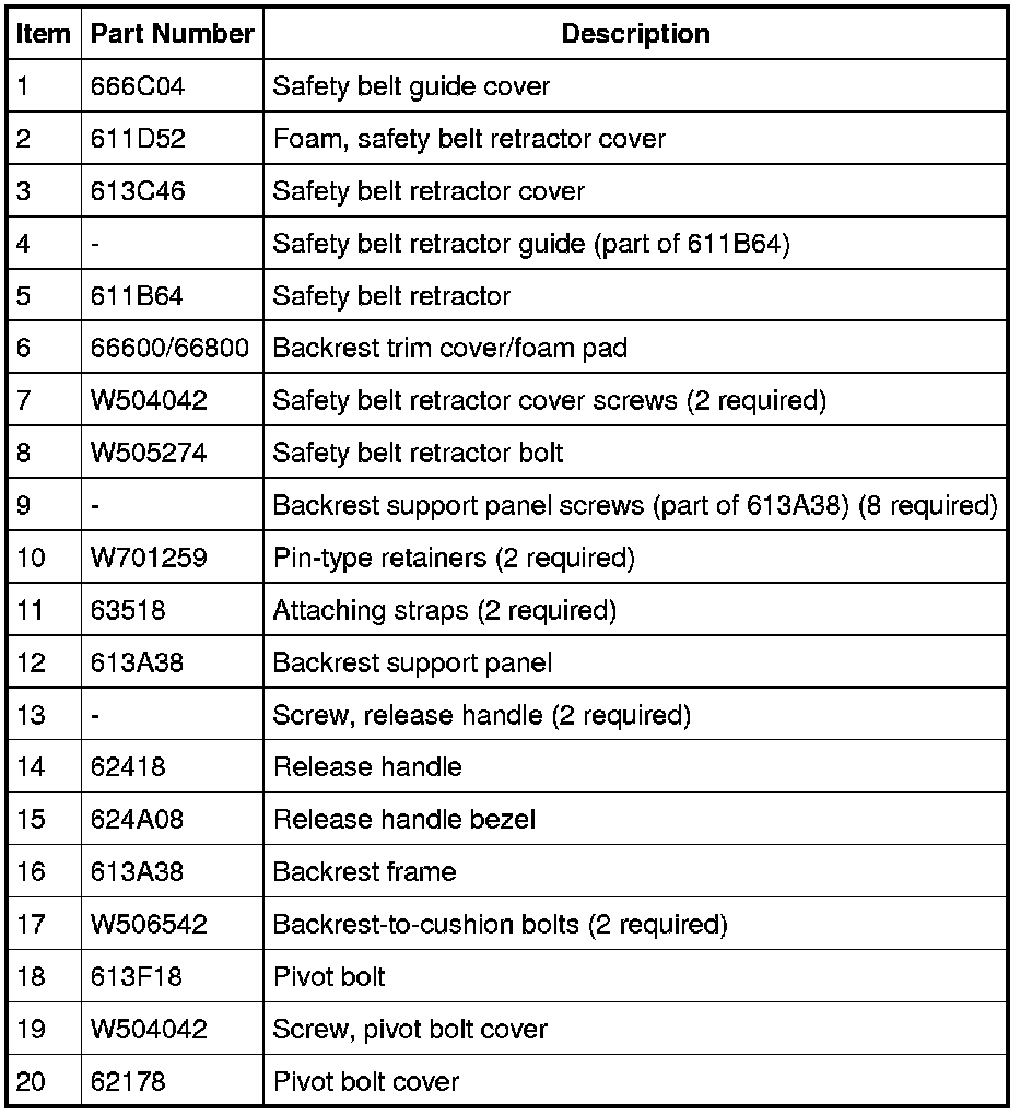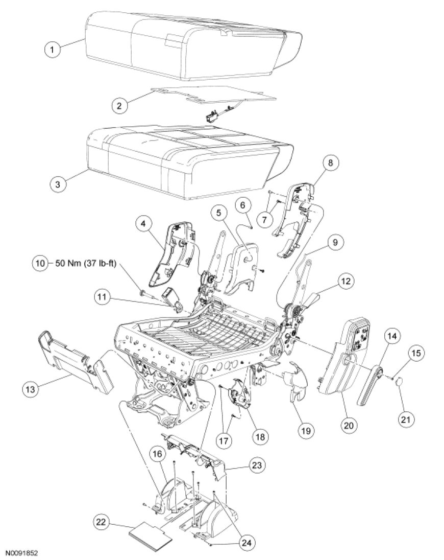 Seat - Exploded View, Second Row