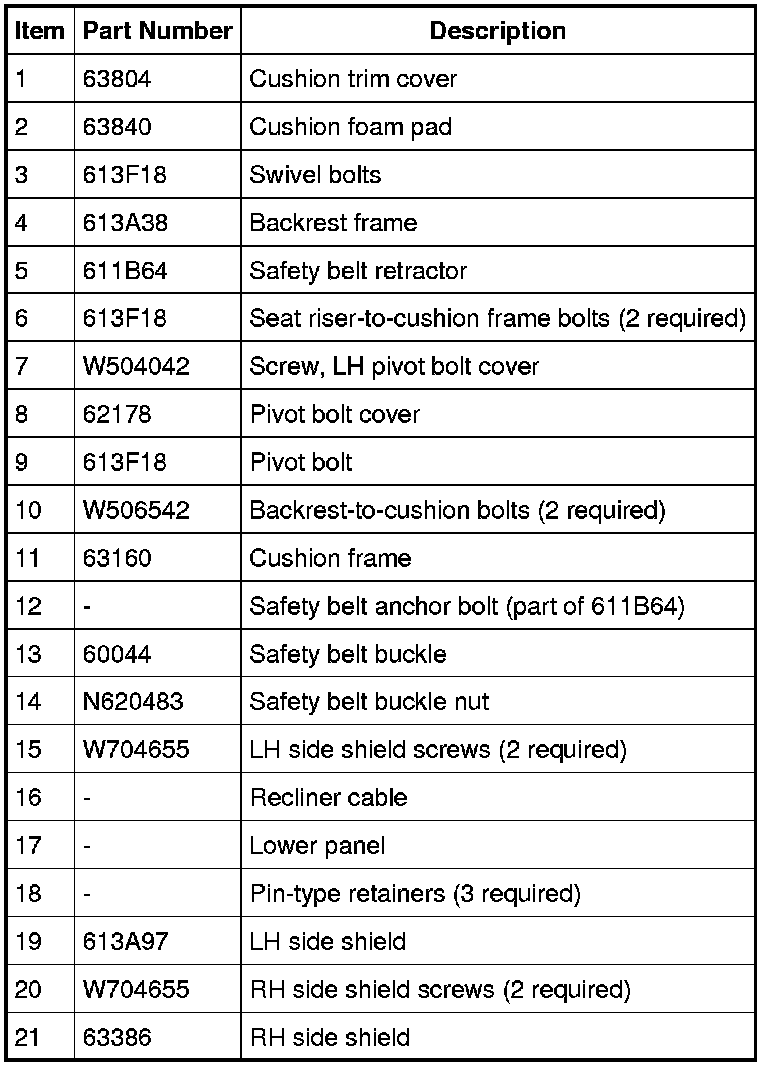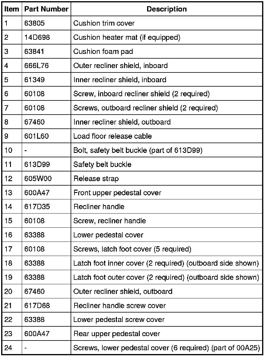 LH seat shown, RH similar.