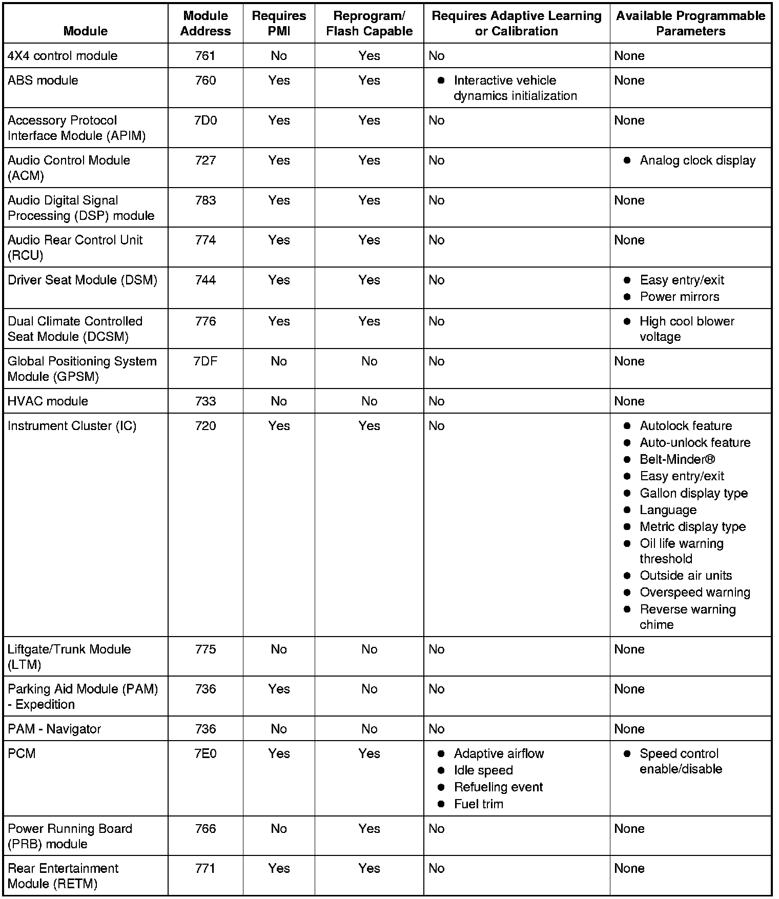 Home >> Ford >> 2010 >> Expedition 4WD V8-5.4L >> Repair and Diagnosis >> Powertrain Management >> Computers and Control Systems >> Information Bus >> Testing and Inspection >> Initial Inspection and Diagnostic Overview >> Module Configuration >> Principles of Operation