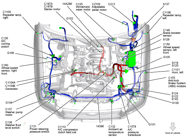 Anti-Lock Brake System (ABS) Module Left front of engine compartment. See Figure.