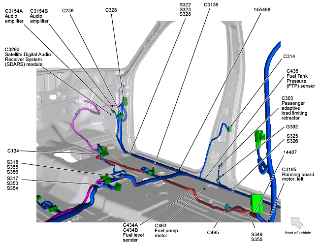 Fuel Pump Driver Module (Sport Trac) Right rear of vehicle. See Figure.