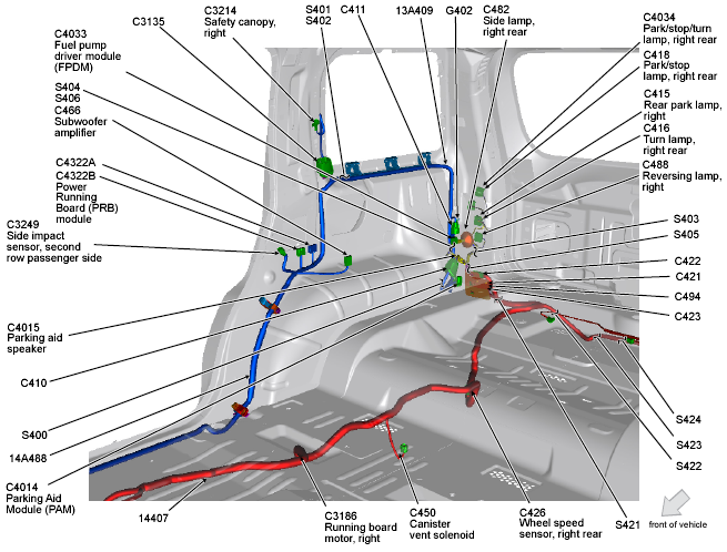 Parking Aid Module (PAM) Right "D" pillar. See Figure.