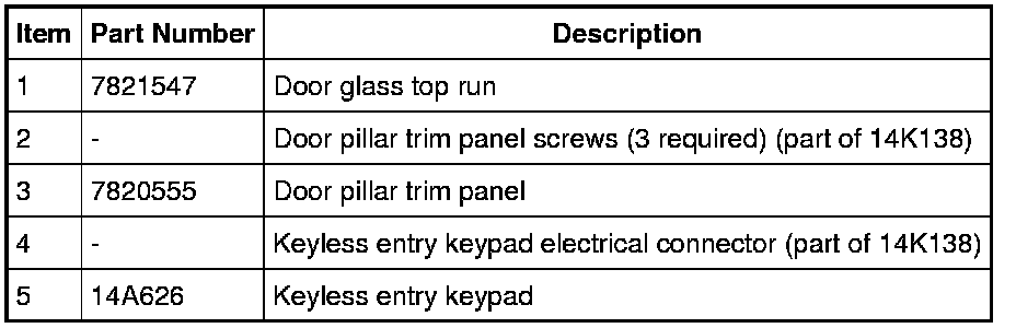 Home >> Ford >> 2010 >> Explorer AWD V6-4.0L >> Repair and Diagnosis >> Body and Frame >> Locks >> Keyless Entry >> Keyless Entry Key-Pad >> Service and Repair