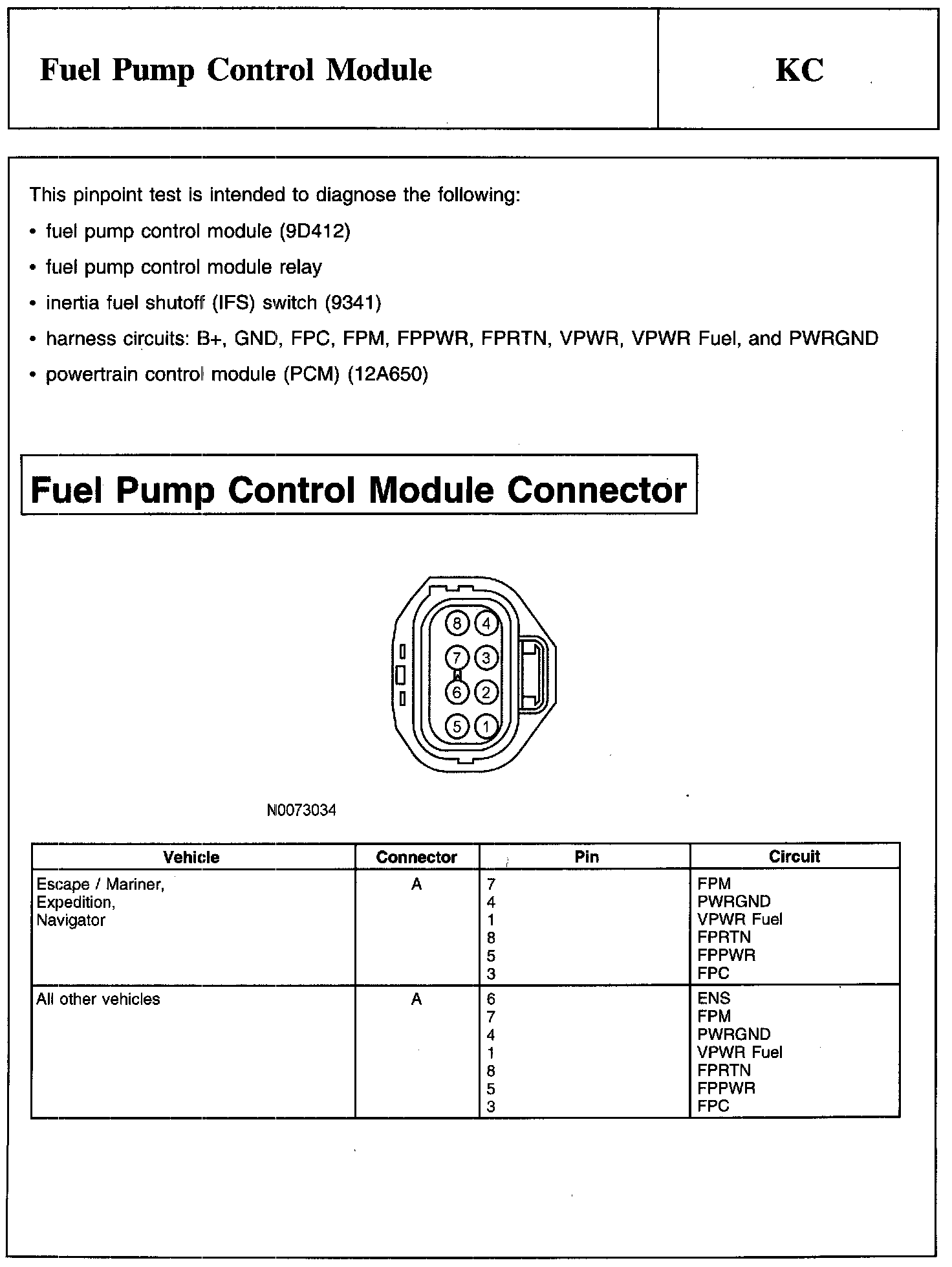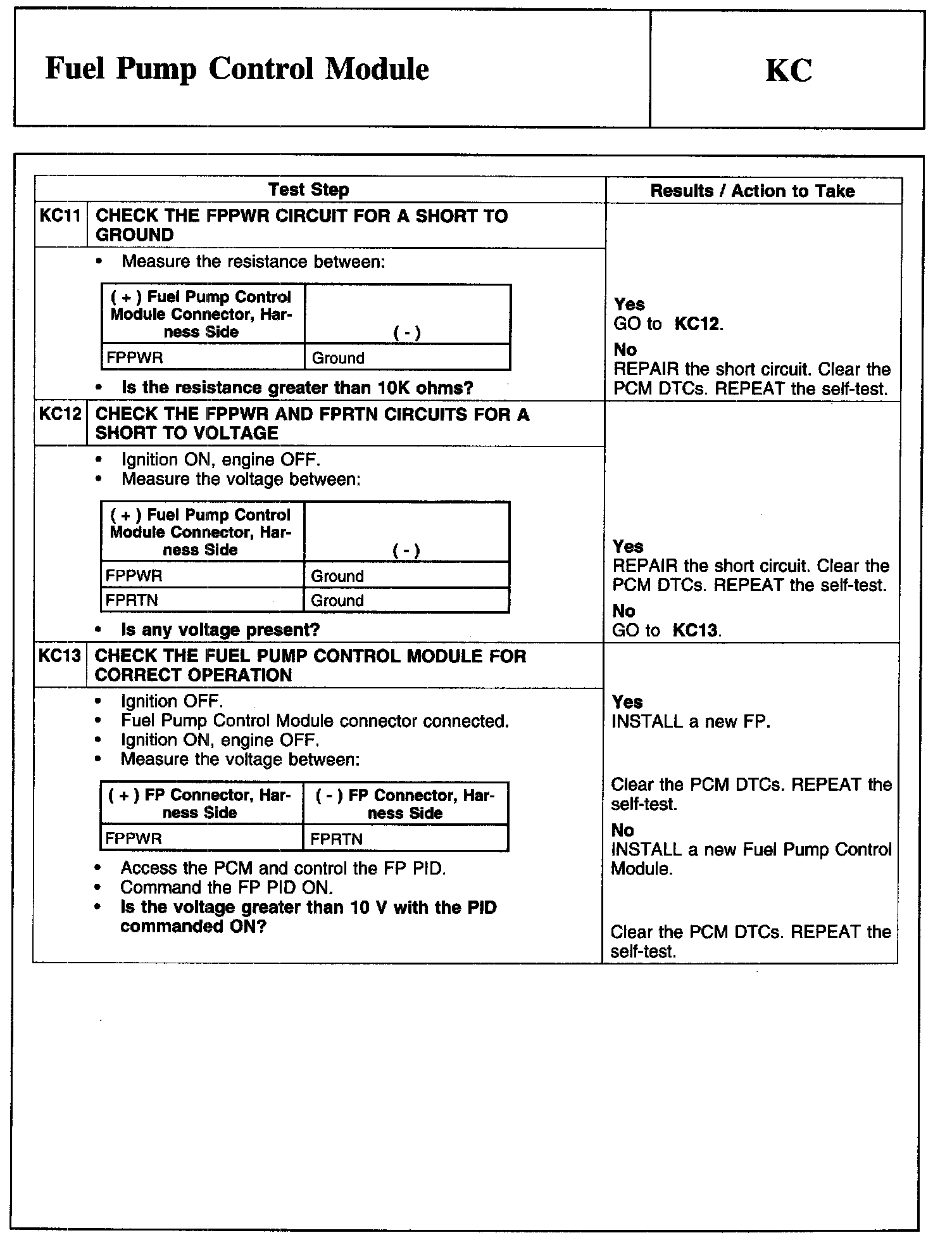 Test KC: Fuel Pump Control Module