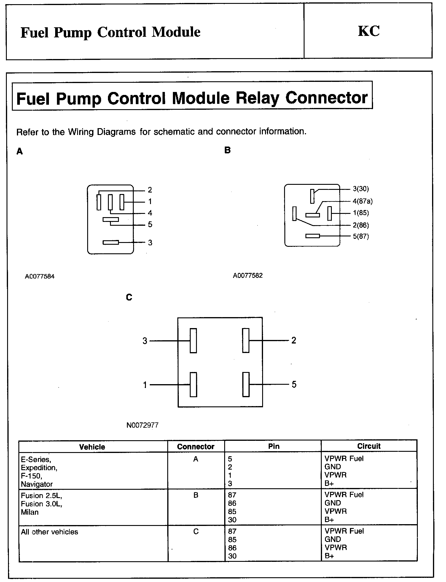 PINPOINT TEST KC: FUEL PUMP CONTROL MODULE
