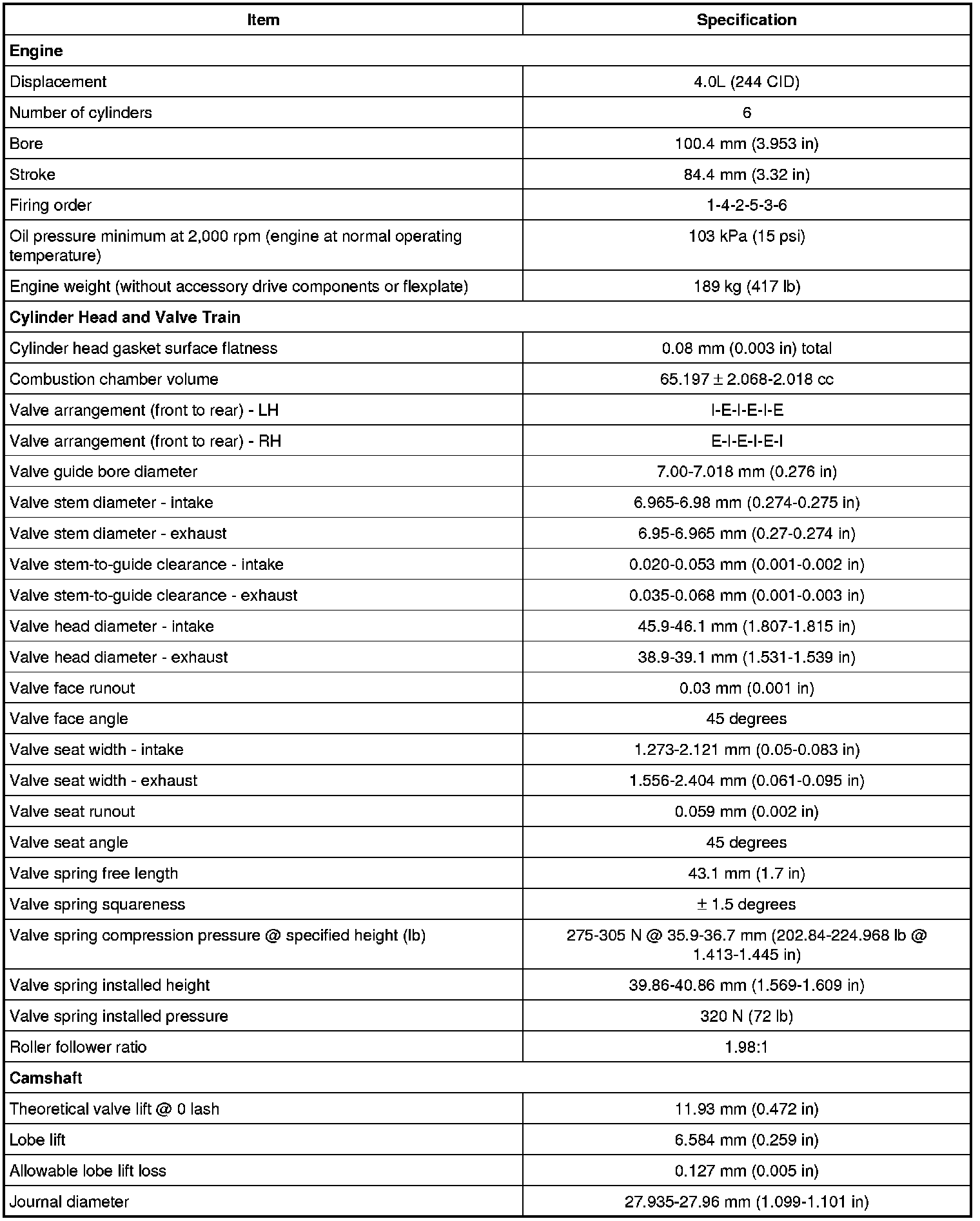 Camshaft Gear/Sprocket Specifications