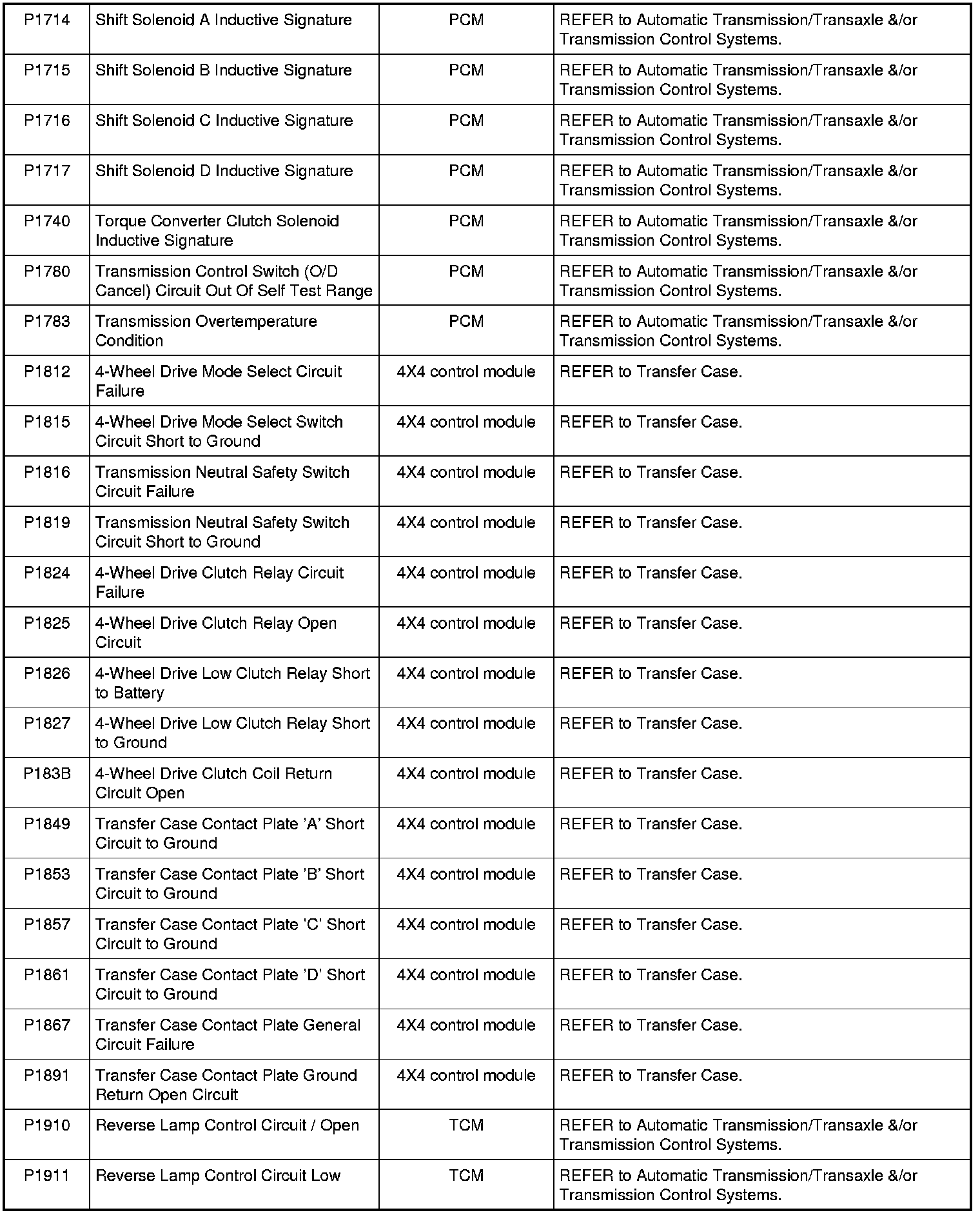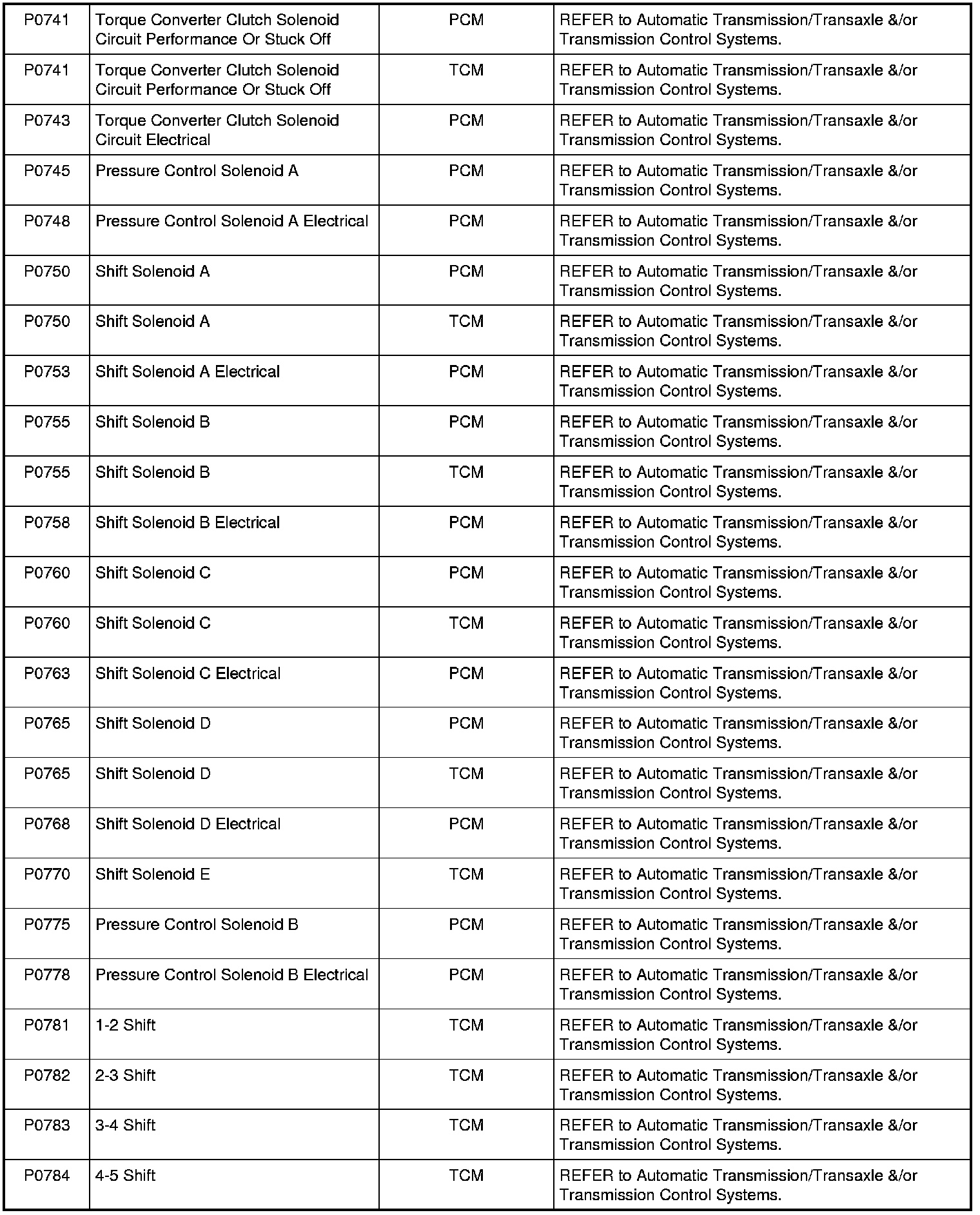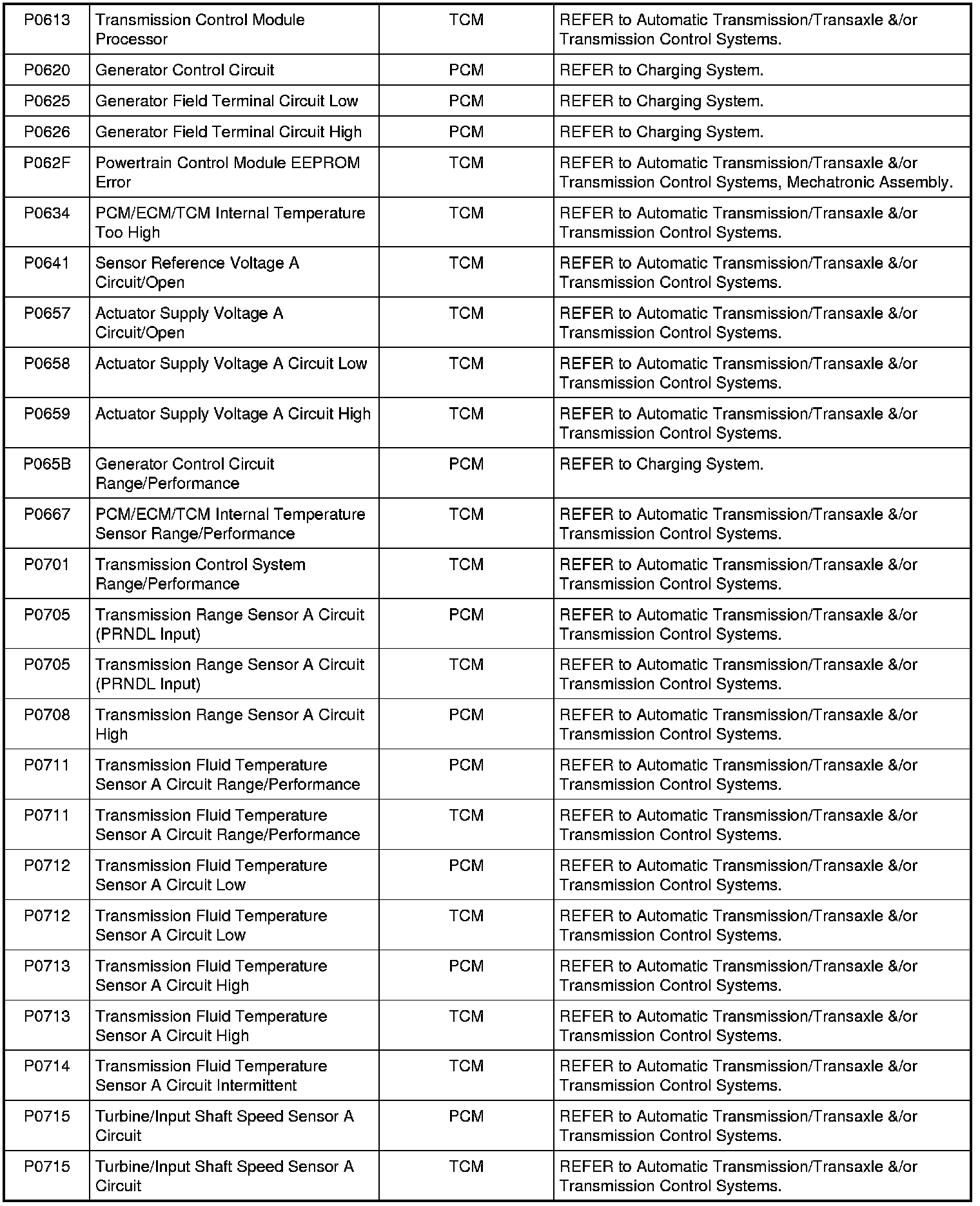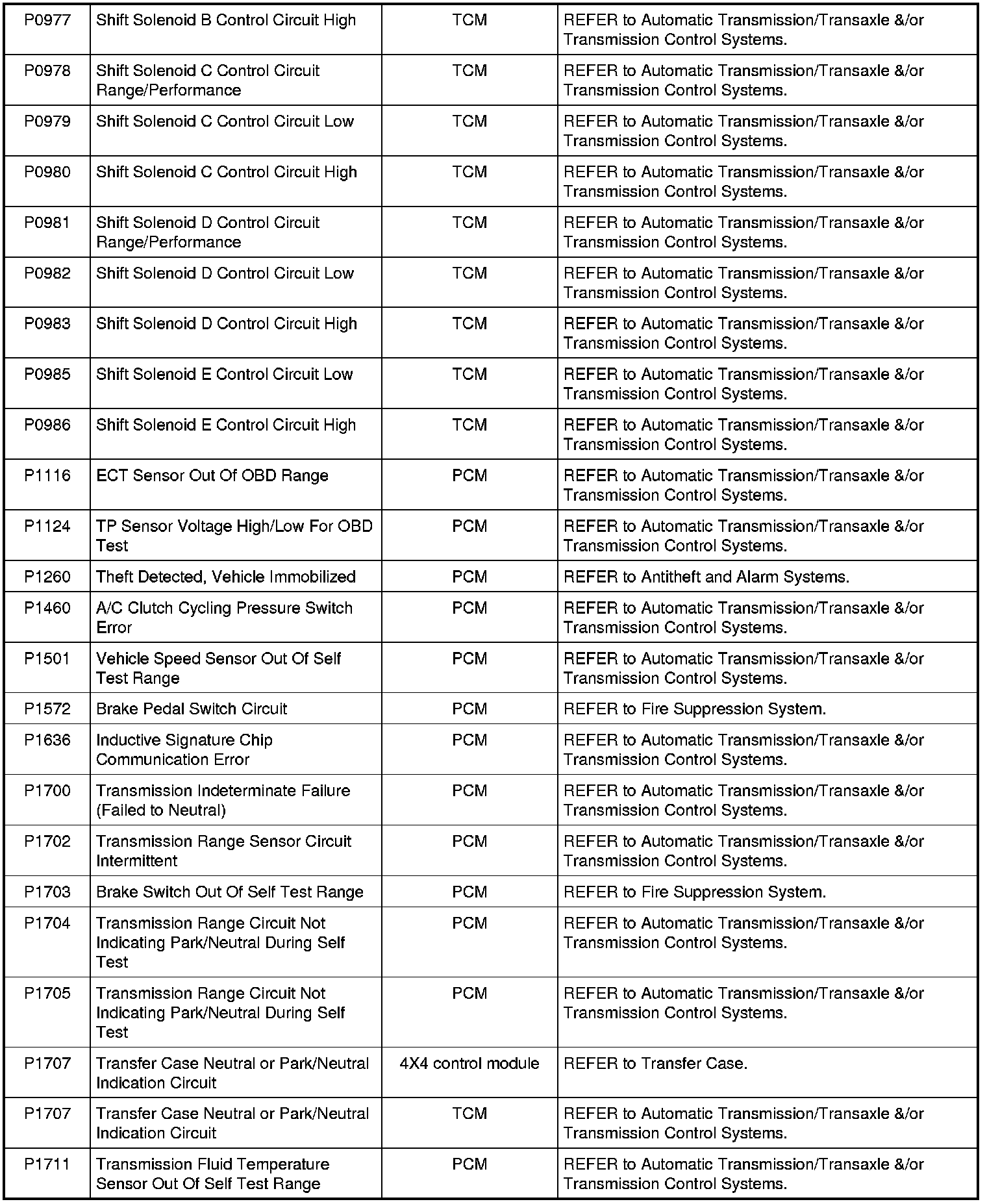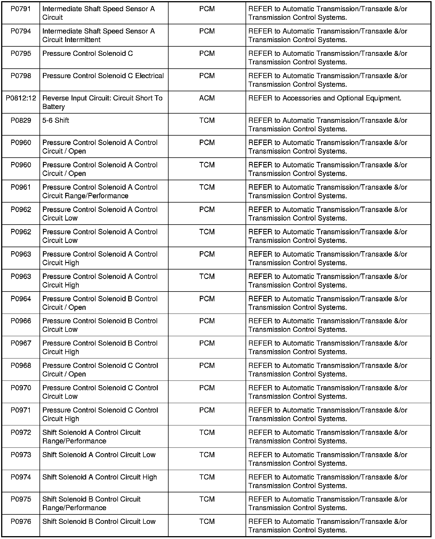 NOTE: Most powertrain (P-code) DTCs are diagnosed in Computers and Control Systems Information. If the P-code retrieved is not listed below, refer to Computers and Control Systems Information to continue diagnostics.