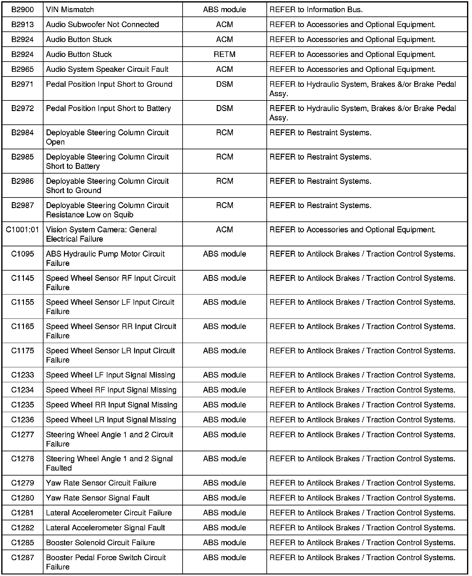 NOTE: Some of these modules utilize a 5-character DTC followed by a 2-character failure-type code. The failure-type code provides information about specific fault conditions such as opens, or shorts to ground. Continuous memory DTCs have an additional 2-character DTC status code suffix to assist in determining DTC history.