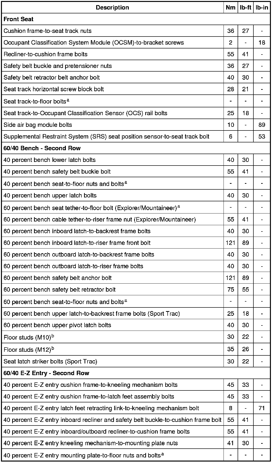 Torque Specifications