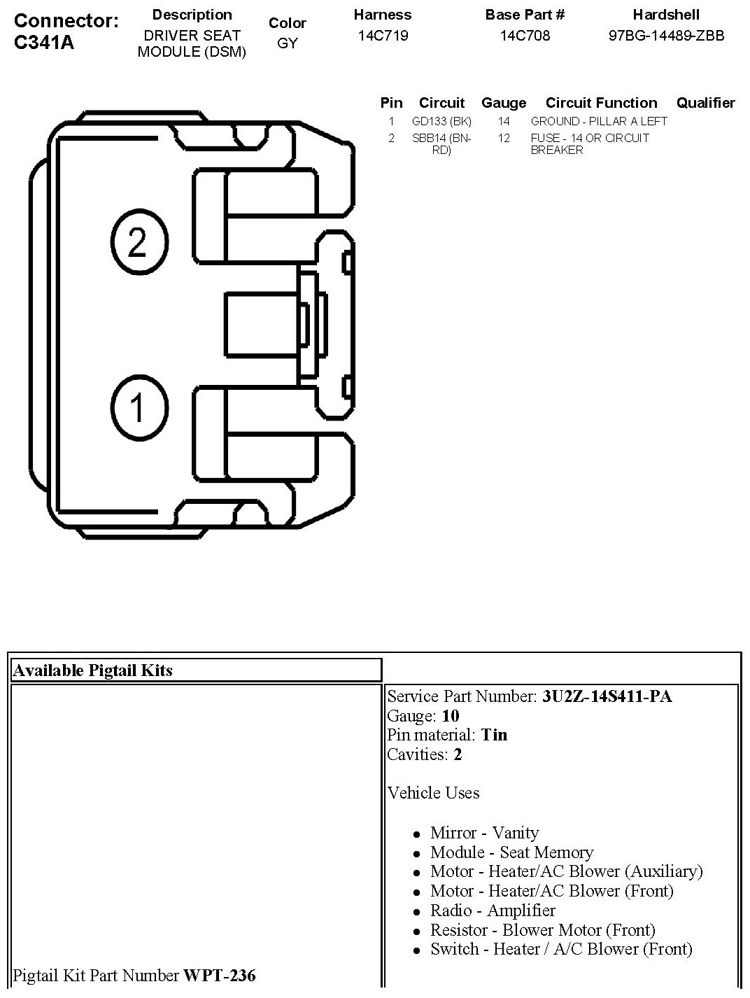 Home >> Ford >> 2010 >> Explorer AWD V8-4.6L >> Repair and Diagnosis >> Diagrams >> Connector Views >> Memory Positioning Module