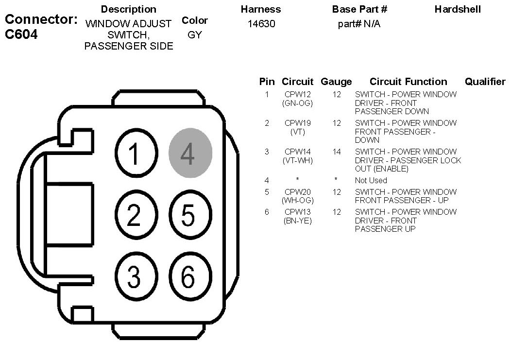 Window Adjust Switch, Passenger Side