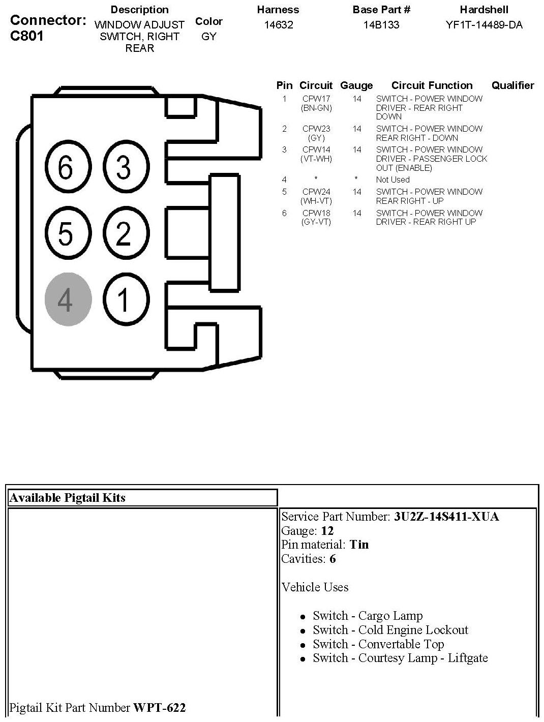 Window Adjust Switch, Right Rear