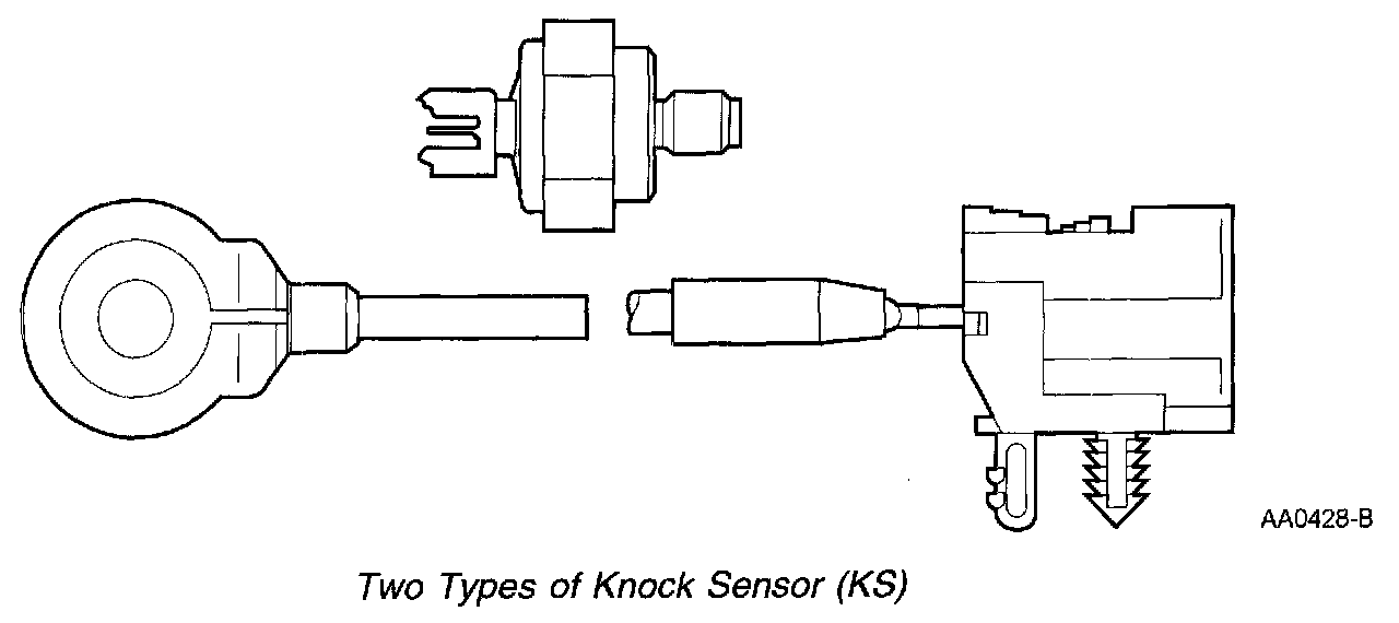 The KS is a tuned accelerometer on the engine which converts engine vibration to an electrical signal. The PCM uses this signal to determine the presence of engine knock and to retard spark timing.