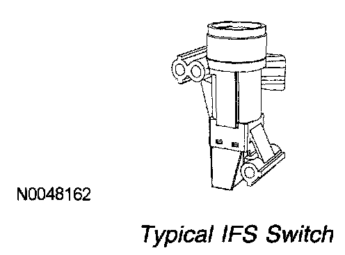 The IFS switch is used in conjunction with the electric fuel pump. The purpose of the IFS switch is to shut off the fuel pump if a collision occurs. It consists of an inverted pendulum mass that is retained in a conical cone via a set of linear springs. When a sharp impact occurs, the pendulum shifts out of the conical cone, opens the circuit and shuts off the electric fuel pump. Once the switch is open, it must be manually reset before restarting the vehicle.