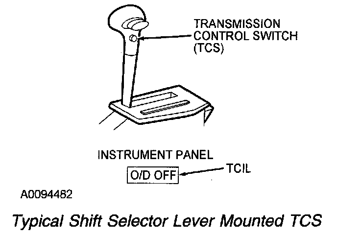 The TCS signals the PCM with VPWR whenever the TCS is pressed. On vehicles with this feature, the TCIL illuminates when the TCS is cycled to disengage overdrive.