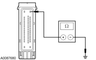 - Measure the resistance between the ABS module C155-16, circuit GD120 (BK/GN), harness side and ground.