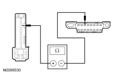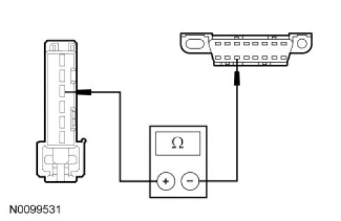 - Measure the resistance between the GPSM C2300-2, circuit VDB06 (GY/OG), harness side and the Data Link Connector (DLC) C251-3, circuit VDB06 (GY/OG), harness side.
