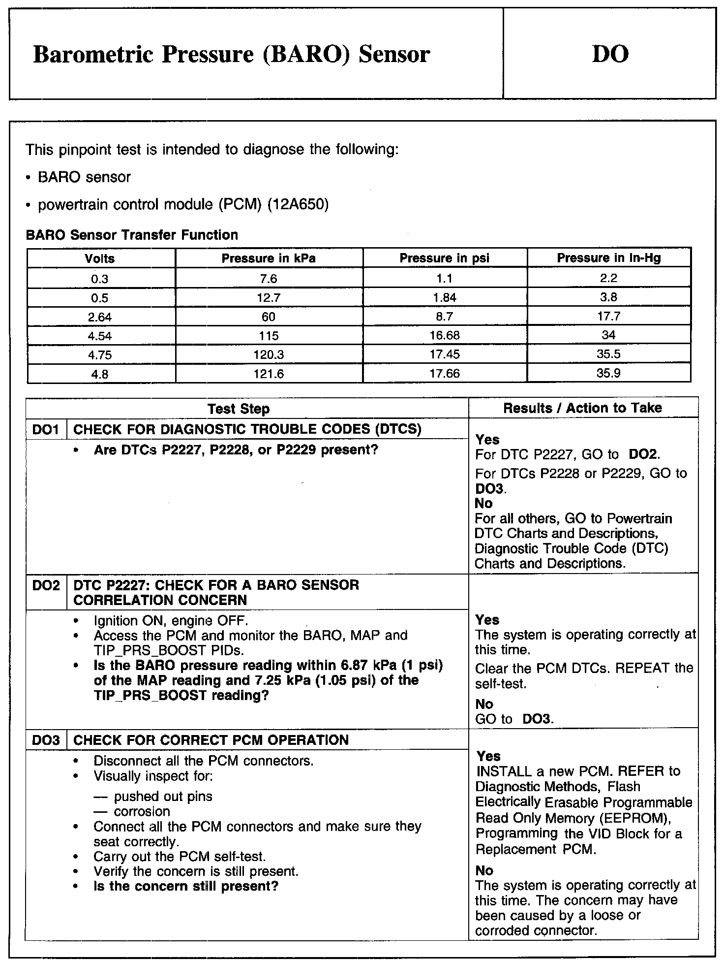 PINPOINT TEST DO: BAROMETRIC PRESSURE (BARO) SENSOR