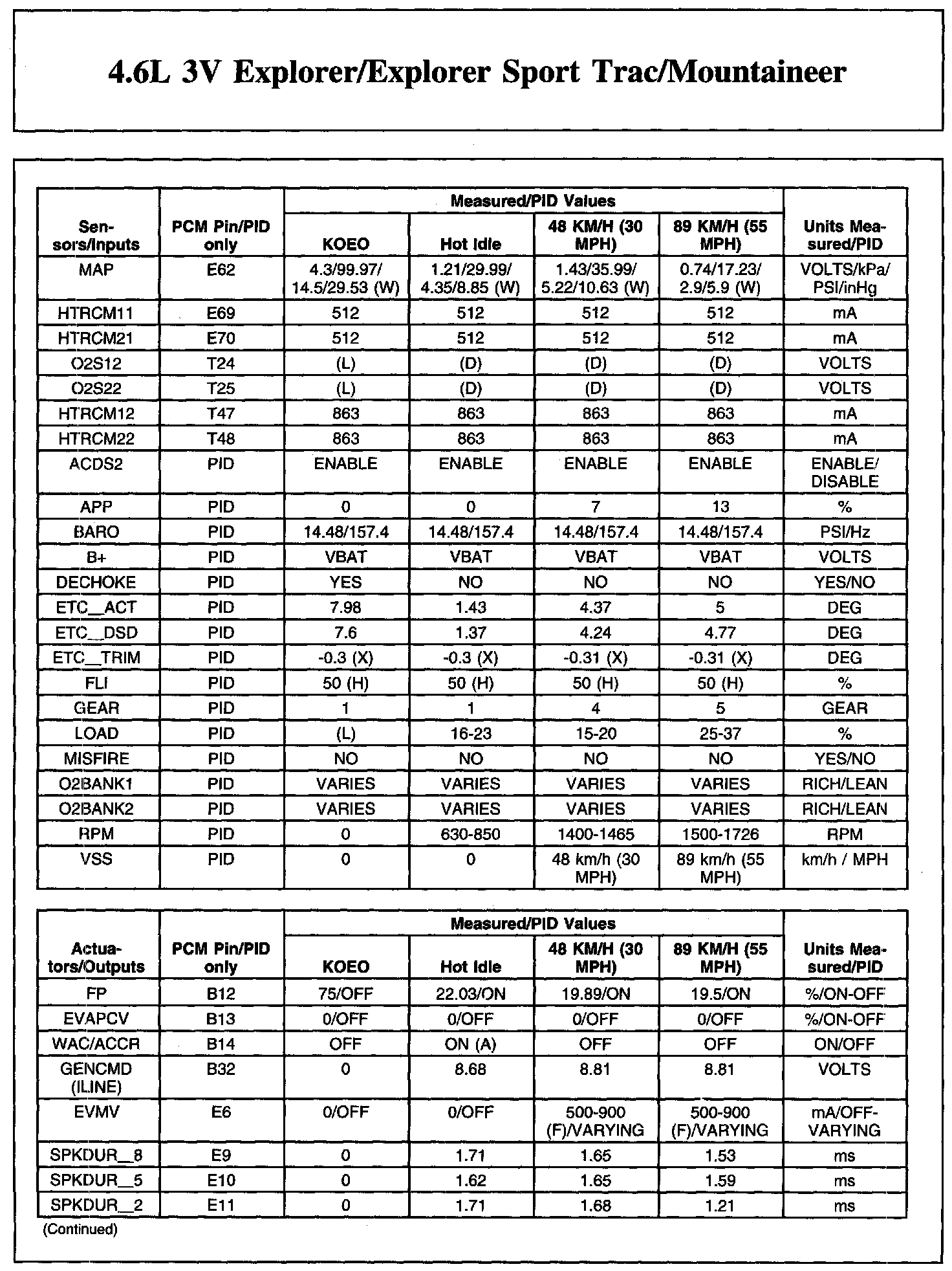 Home >> Ford >> 2010 >> Explorer AWD V8-4.6L >> Repair and Diagnosis >> Powertrain Management >> Computers and Control Systems >> Testing and Inspection >> Scan Tool Testing and Procedures >> Typical Diagnostic Reference Values