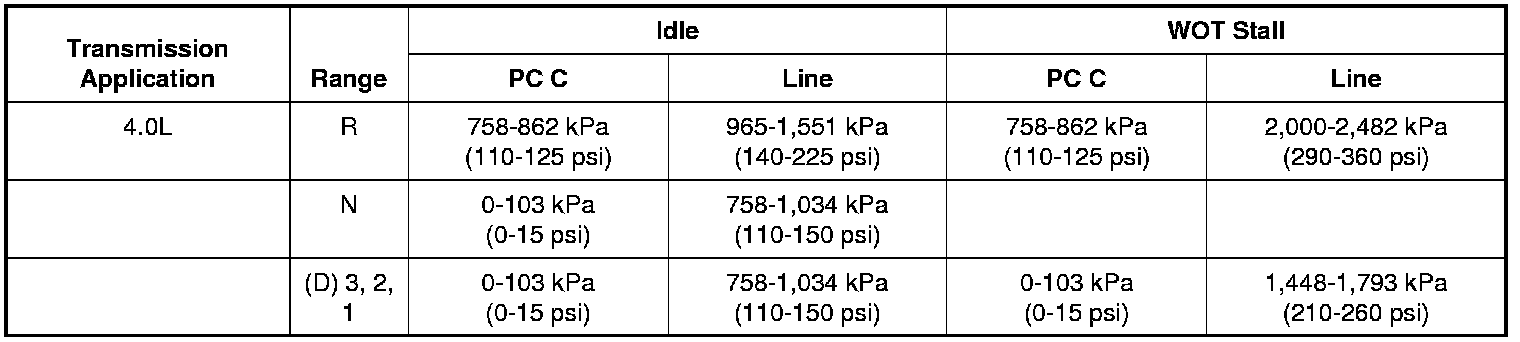 Line Pressure Chart