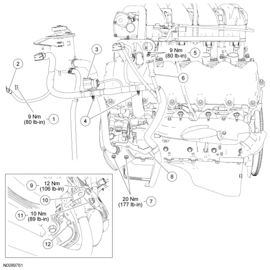 11. Remove the nut and position the battery cable engine front cover bracket aside.