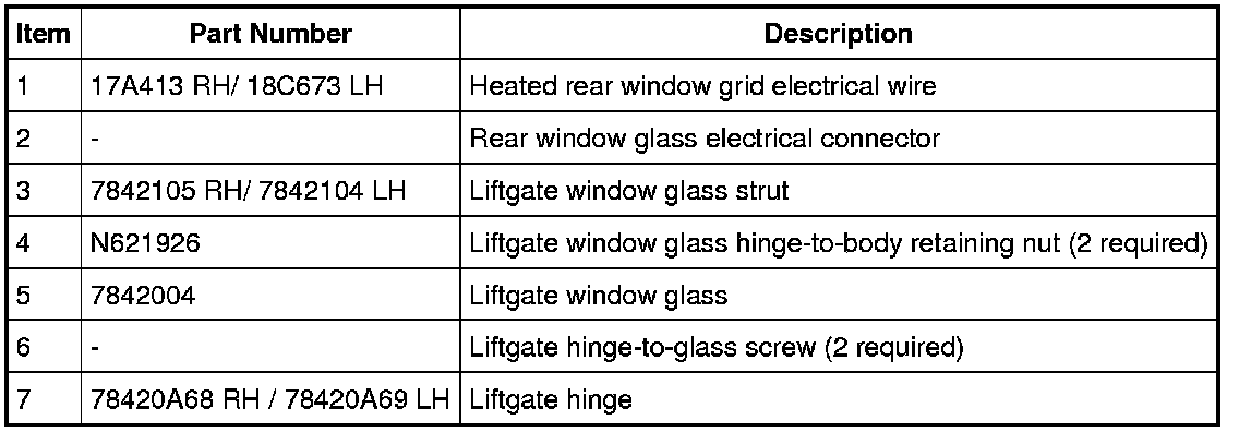 - To avoid breaking the liftgate window glass, disconnect the liftgate window glass struts from the liftgate window glass before disconnecting the liftgate window glass struts from the rear liftgate.