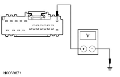 - Measure the voltage between the DSM C341b-1, circuit CBX03 (BU/RD), harness side and ground.