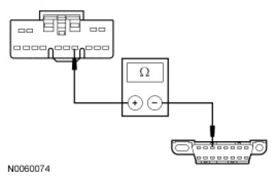 - Measure the resistance between the PRB module C3313b-7, circuit VDB07 (VT/OG), harness side and the DLC C251-11, circuit VDB07 (VT/OG), harness side.