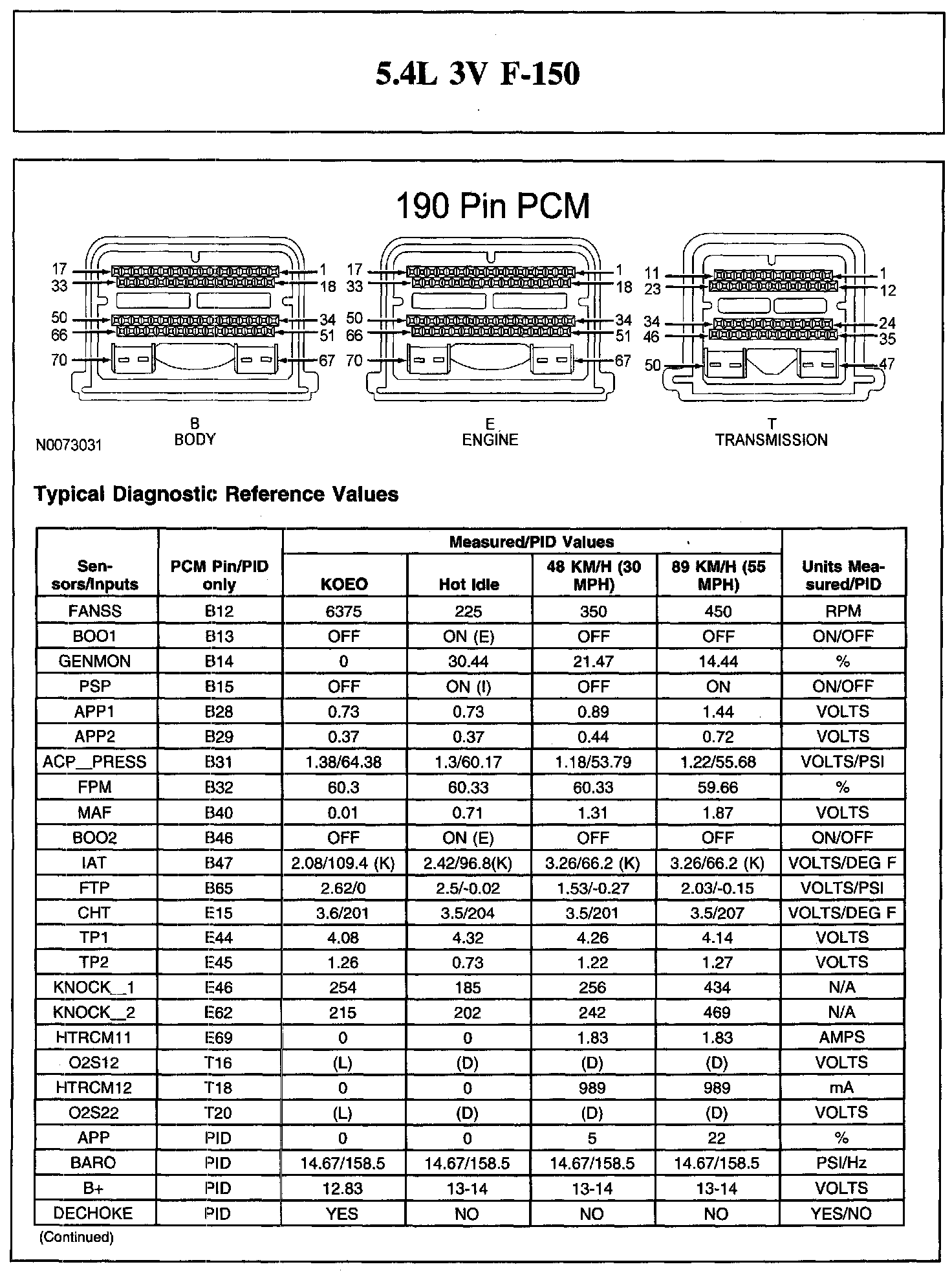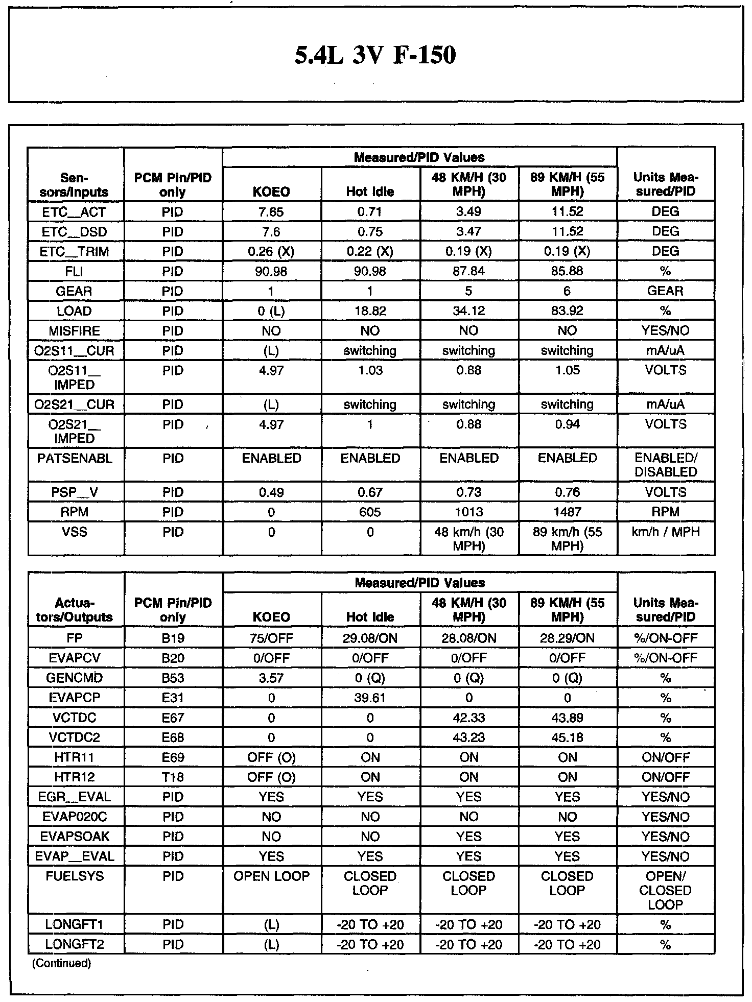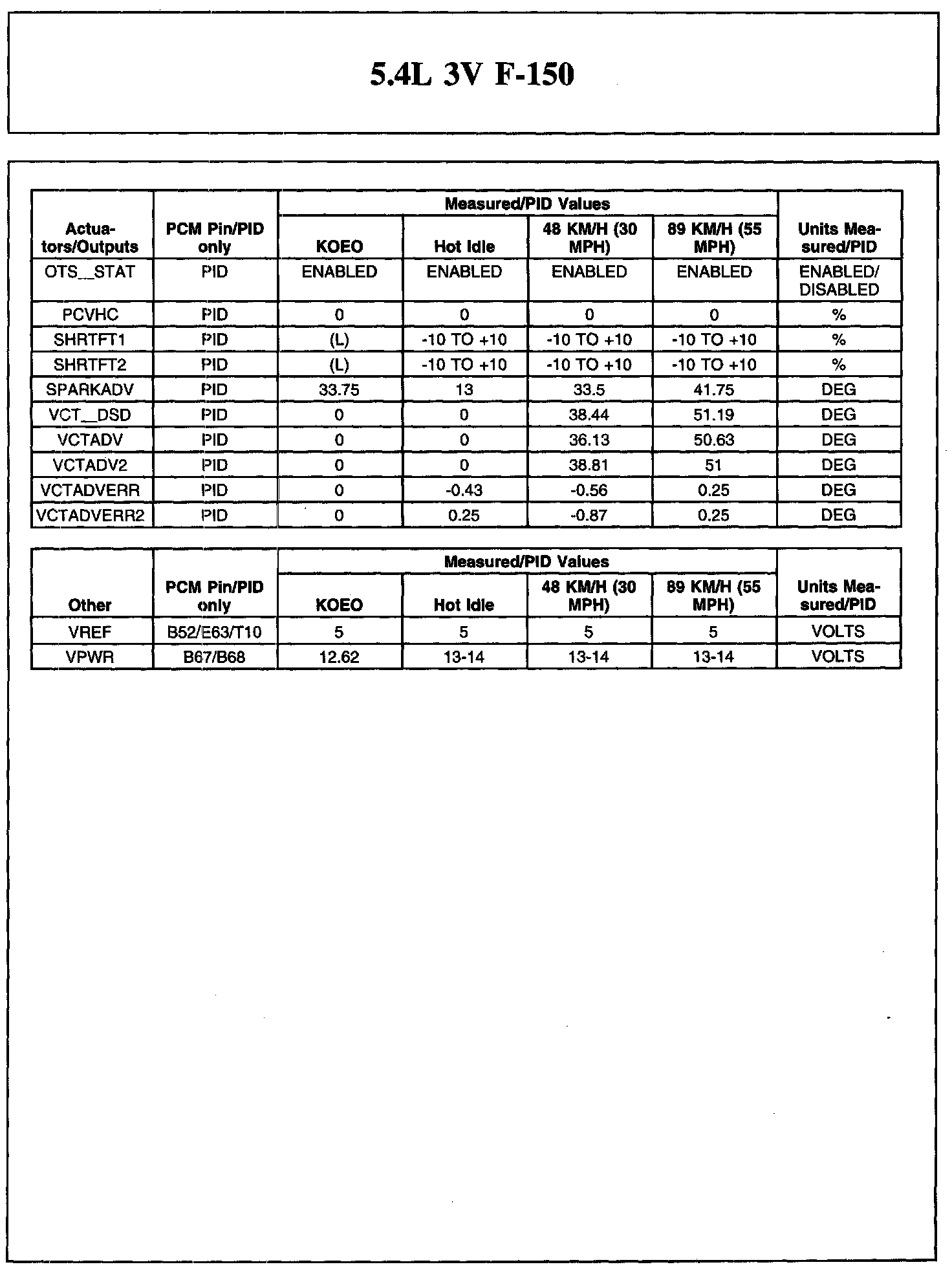 The Typical Diagnostic Reference Value Charts do not display fault parameter identifications (PIDs). These are PIDs which indicate a hard fault with the circuit. They display a value of YES or NO and are PIDs ending with the letter F.