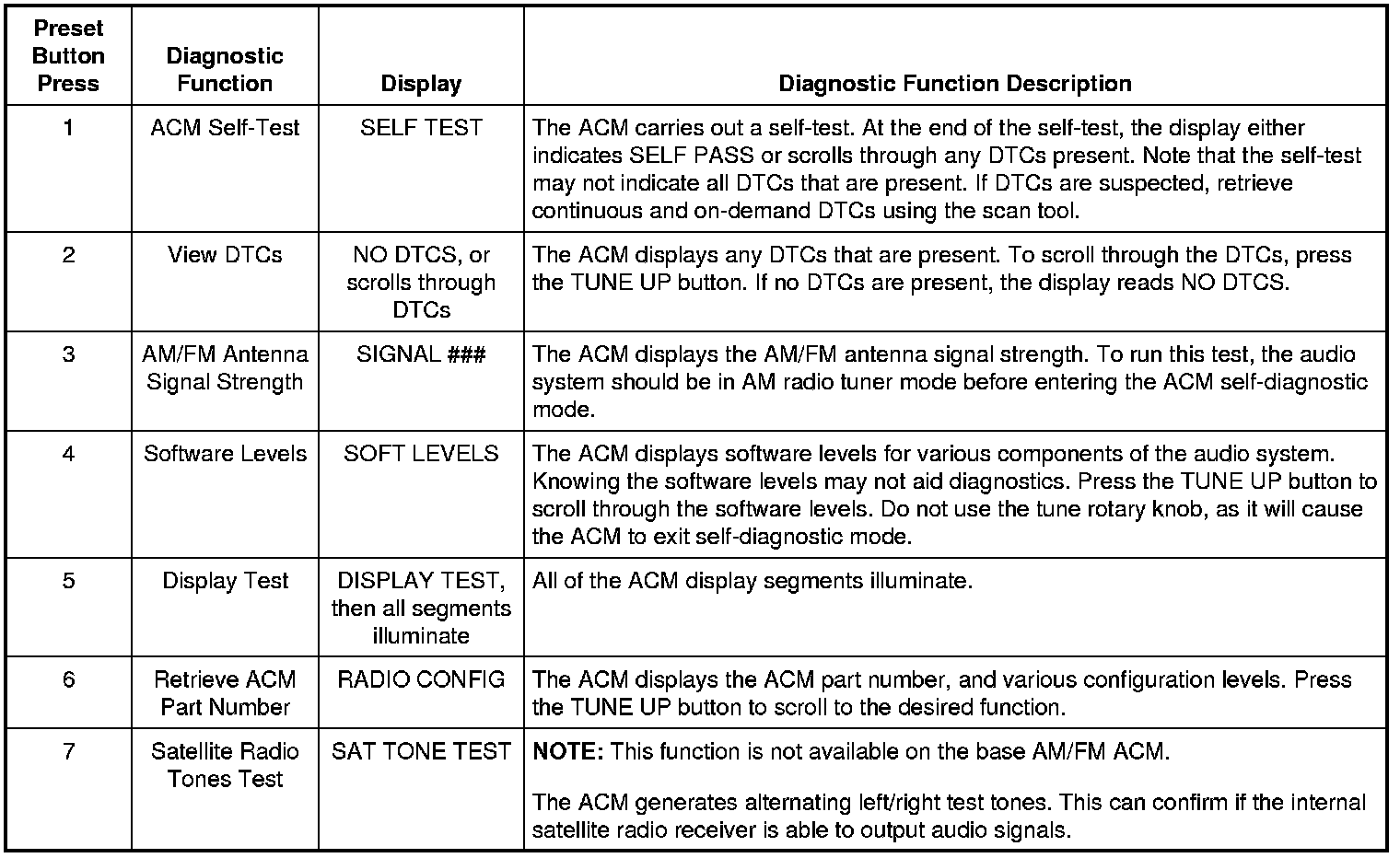 Audio Control Module (ACM) Self-Diagnostic Mode