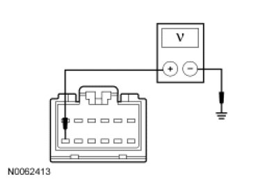 - Measure the voltage between the FDIM C2123-12, circuit SBP26 (YE/RD), harness side and ground.