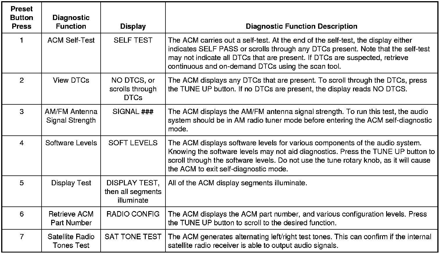 Audio Control Module (ACM) Self-Diagnostic Mode