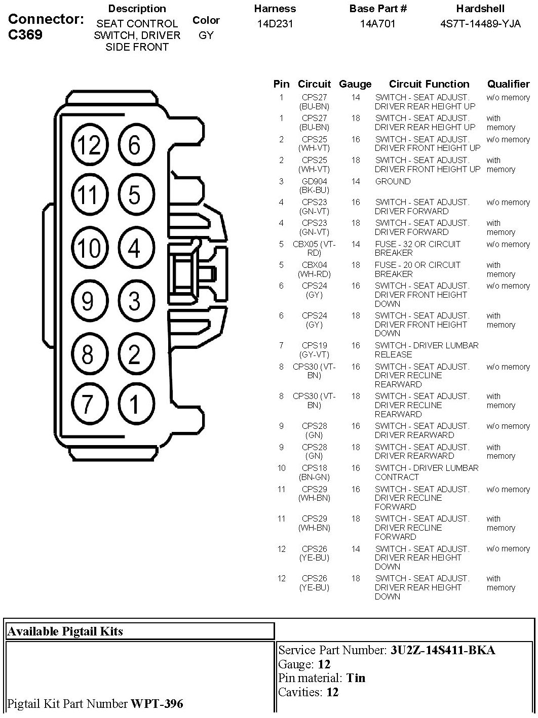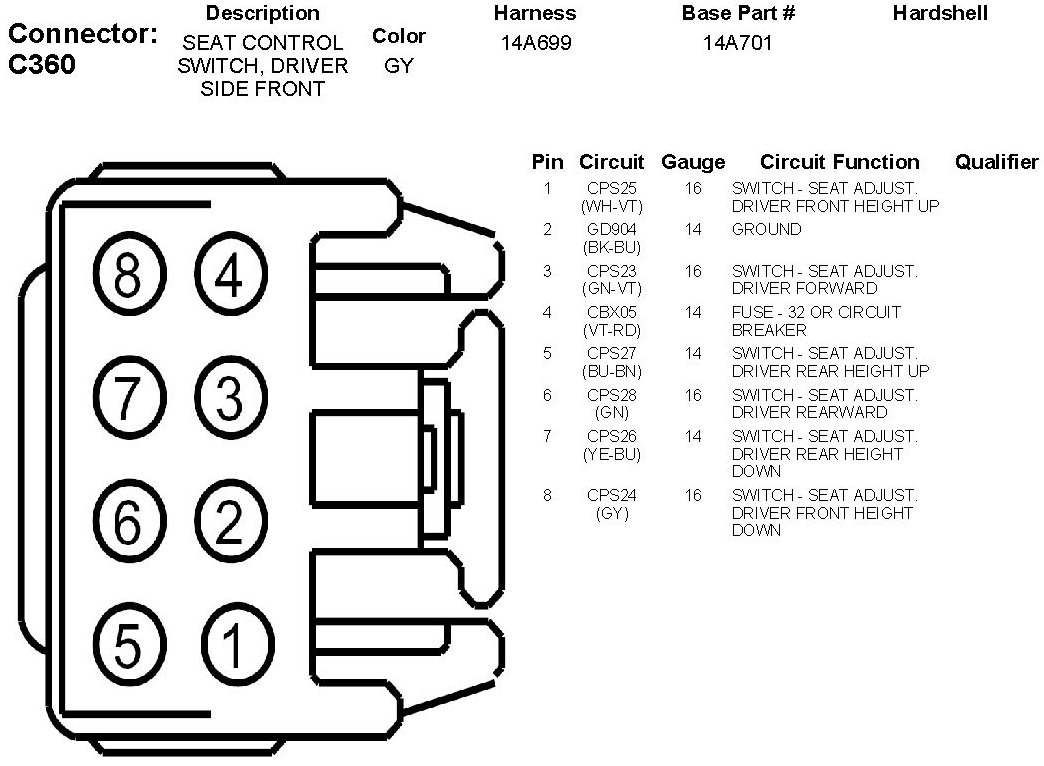 Seat Control Switch, Driver Side Front