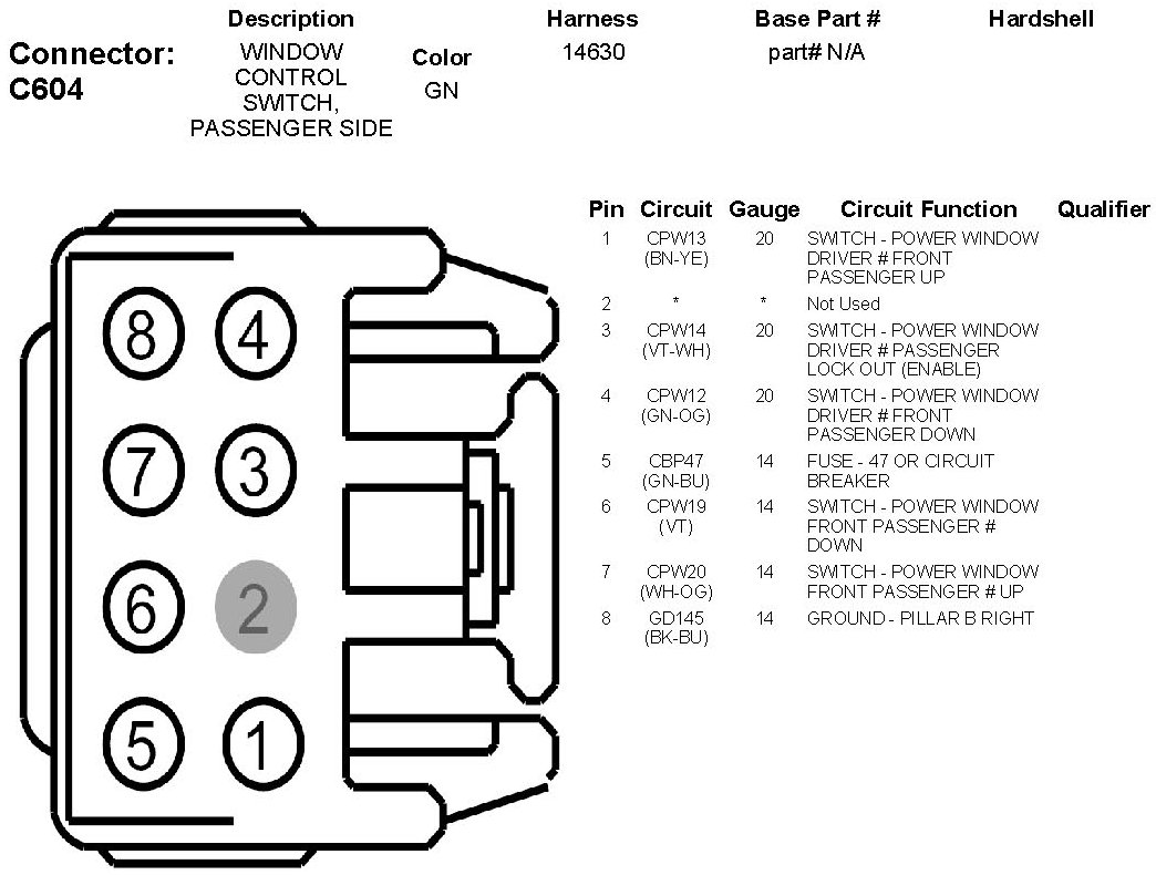 Window Control Switch, Passenger Side