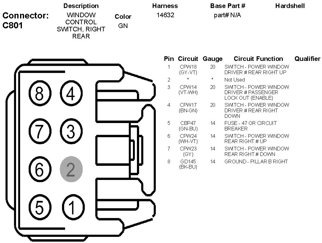 Window Control Switch, Right Rear