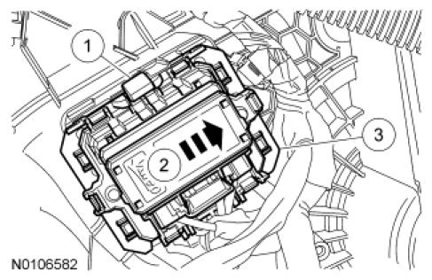 2. With the retaining tab depressed, slide the auxiliary blower motor speed control toward the front of the vehicle to detach it from the auxiliary climate control housing.