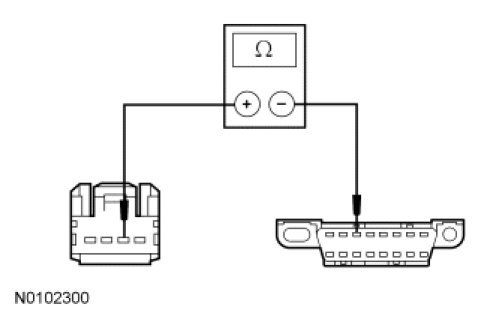 - Measure the resistance between the FCIM C2402-3, circuit VDB07 (VT/OG), harness side and the DLC C251-11, circuit VDB07 (VT/OG), harness side.