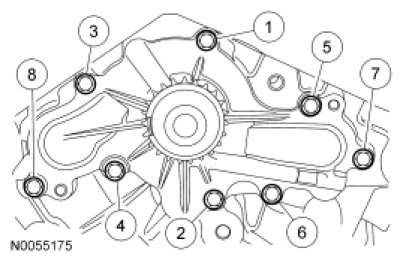 Install the coolant pump and the 8 bolts.