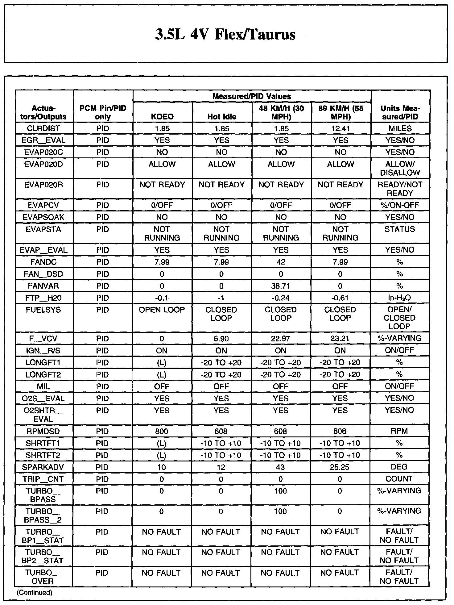 Home >> Ford >> 2010 >> Flex FWD V6-3.5L >> Repair and Diagnosis >> Powertrain Management >> Computers and Control Systems >> Testing and Inspection >> Scan Tool Testing and Procedures >> Typical Diagnostic Reference Values